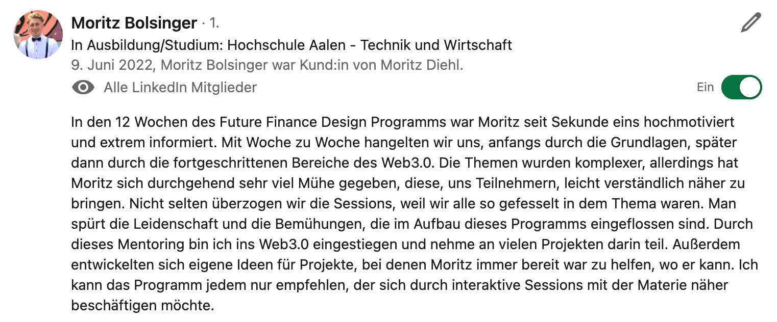 in den Bereichen Investment, Training, Digitalisierung, Blockchain, Web 3.0